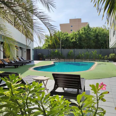 庭園の景色を見渡すThe Chanthong Residence And Hotel パッタヤーは、ハーバー・パタヤから徒歩で約25分の場所に位置しています。 駐車場もあります。